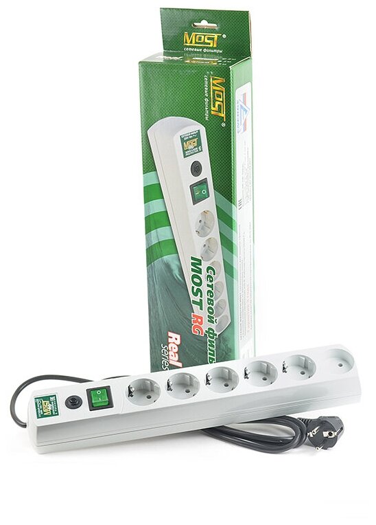 Сетевой фильтр MOST Real R, 6 розеток, б/з, 6А / 1300 Вт 5 м