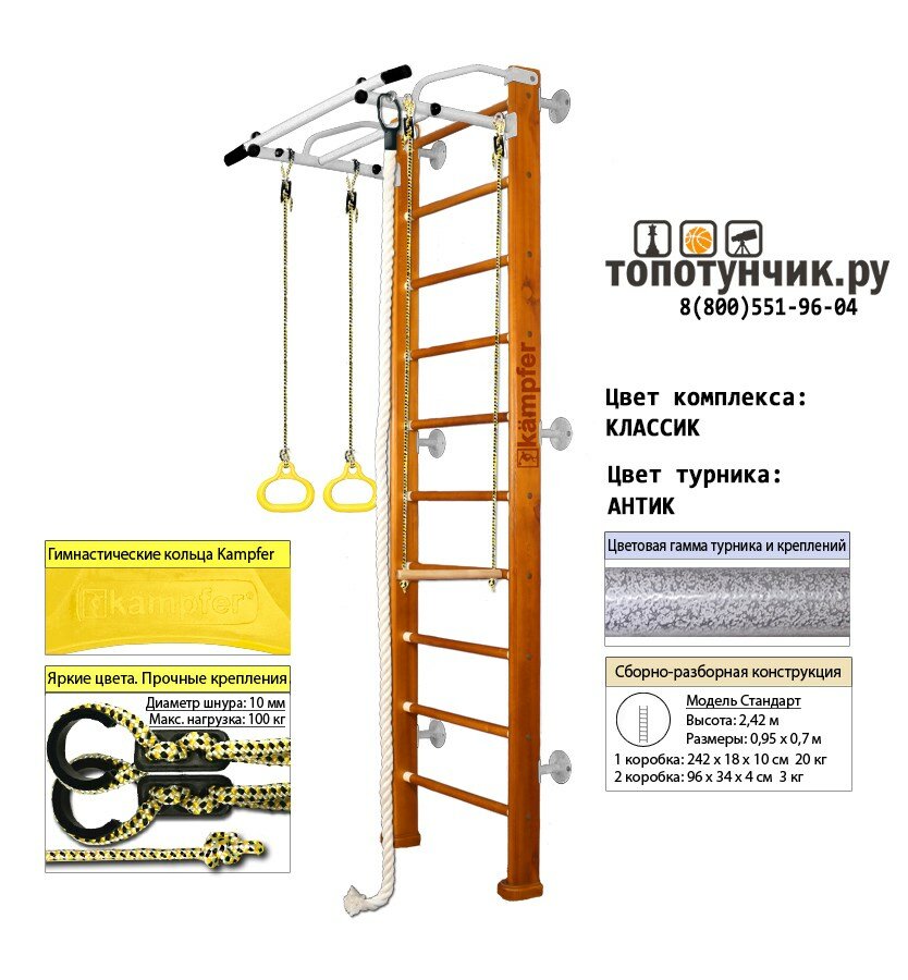 Kampfer "Helena Wall" спортивно-игровой комплекс 2,4 м. (стандарт) Классик/Антик турник информация: