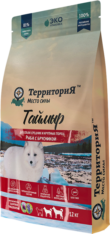 ТерриториЯ "Таймыр" с белой рыбой и брусникой сухой корм для взрослых собак средних и крупных пород 12кг информация: