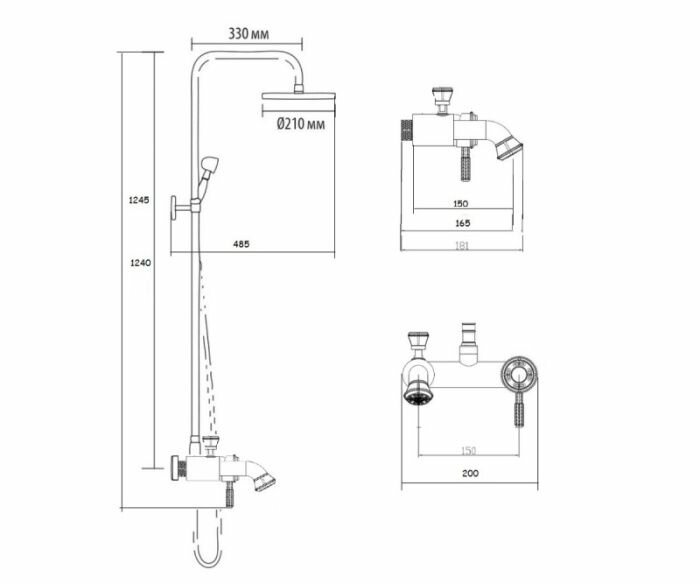 | Комплектация | верхний душ / лейка / ручной душ |