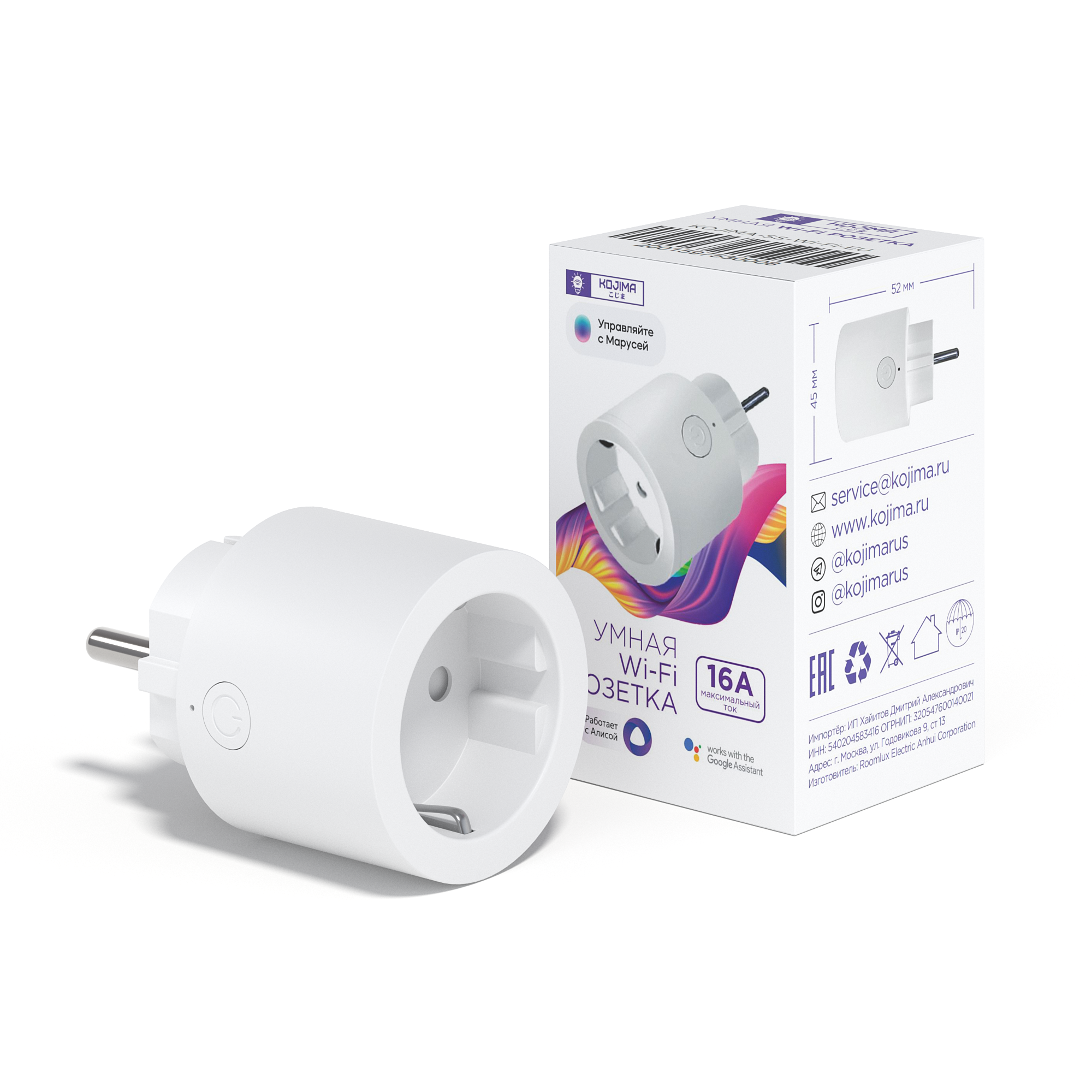 Умная розетка KOJIMA с Wi-Fi, Яндекс Алисой, Google Home, Smart Power Plug 16A информация: