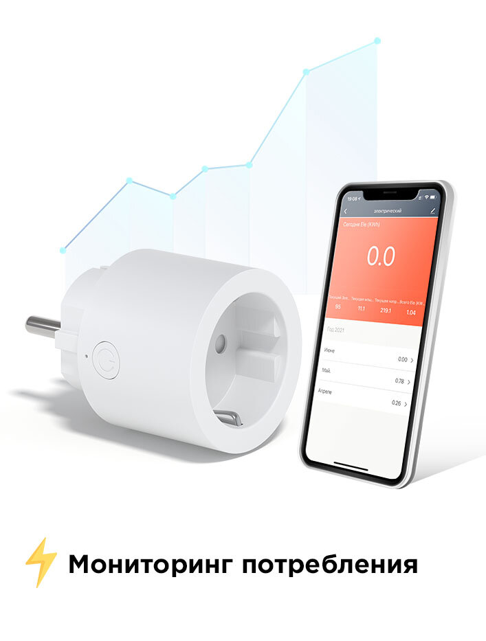 | Дополнительная информация | беспроводные интерфейсы: 802.11 b/g/n 2.4ГГц, antenna gain:1dBi, поддерживаемые ОС: 1. Android 4.4.2 и выше 1. IOS 8 и выше, мониторинг потребления электроэнергии в режиме реального времени |