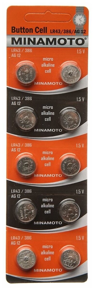 Батарейкa MINAMOTO AG12, 1.5 В BL10 информация: