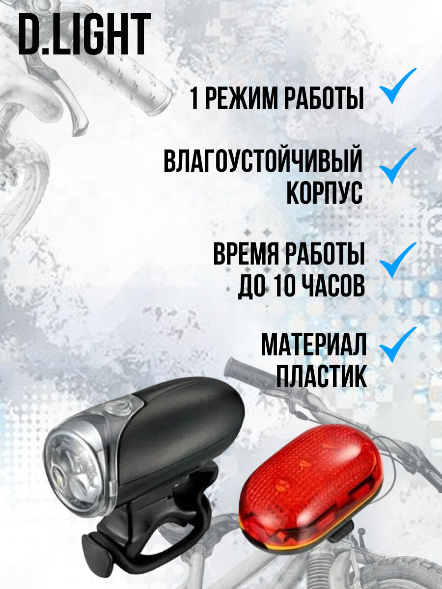 | Дополнительная информация | подробная комплектация: комплект велофонарей; вес: 180 г |