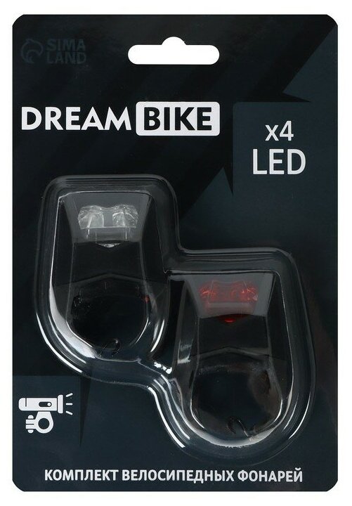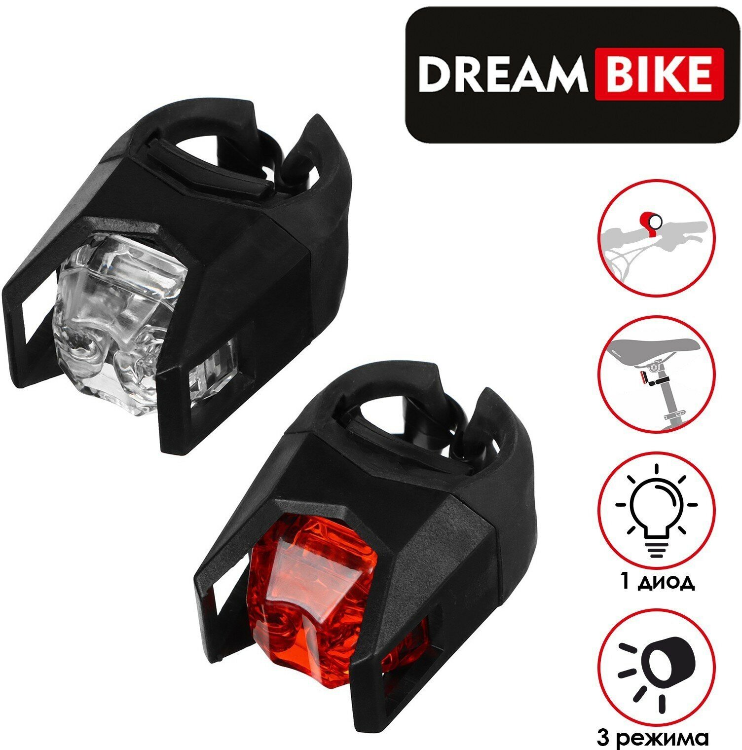 Комплект Dream Bike "JY-3005", велосипедных фонарей, 1 диод, 3 режима, цвет черный, красный