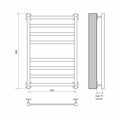 TERMINUS Полотенцесушитель электрический Terminus Хендрикс П6 500x596, ТЭН HT-1 300W, левый/правый