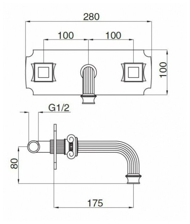 Смеситель на раковину настенный Эверест B46-350 с круглым поворотным изливом, кран-буксы 1/2", хром