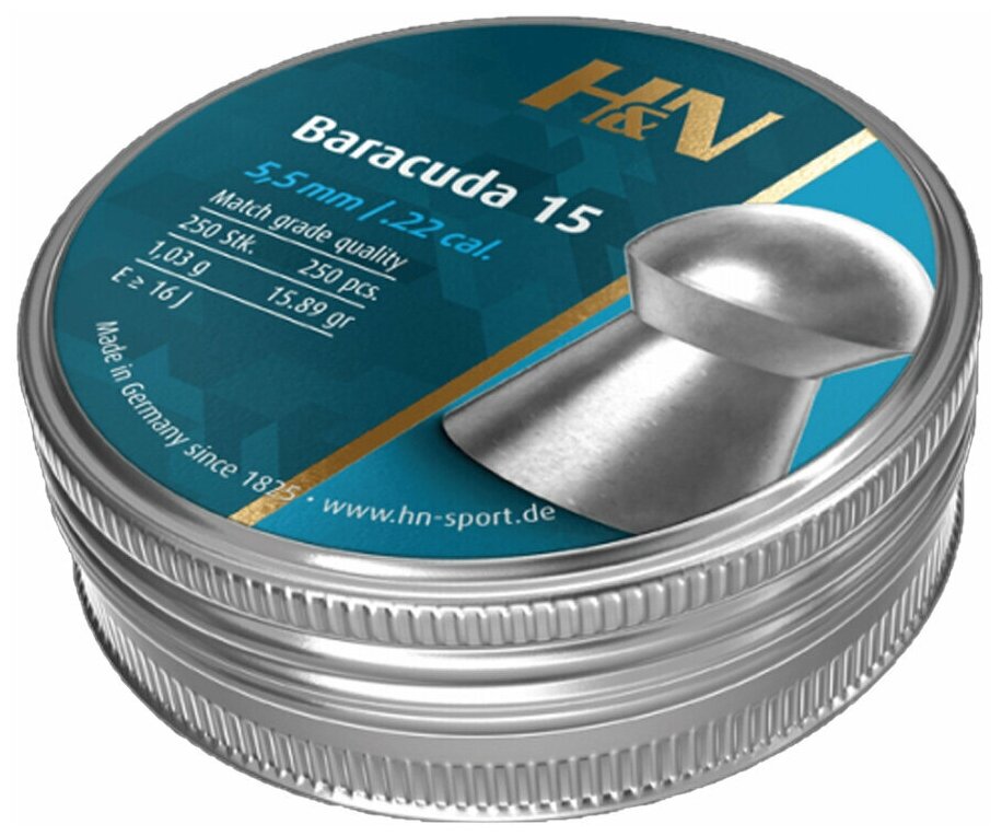 Пули для пневматики H&N Baracuda 15 (5,5 мм, 1,03гр, 250 шт) информация: