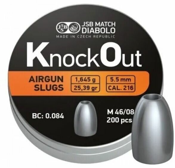 Пули для пневматики JSB KnockOut Slugs 5,5мм (.216) 1,645г (200 шт)