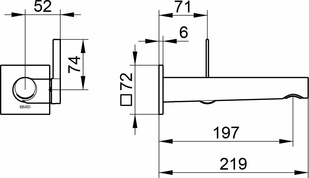 Внешняя часть встраиваемого смесителя для раковины Keuco IXMO, арт. 59516011102, длина излива 19,7см