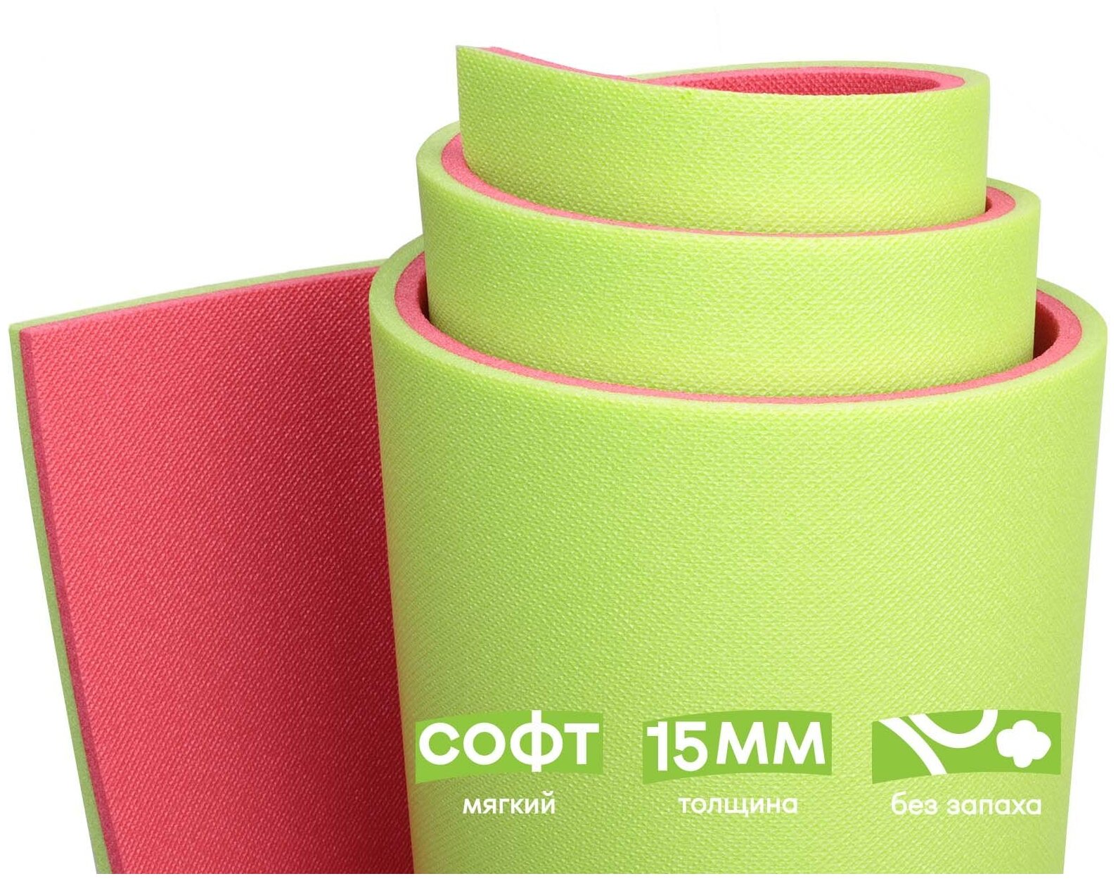 Коврик-каремат для йоги и фитнеса soft 15mm 180x60cm, салатовый / красный информация: