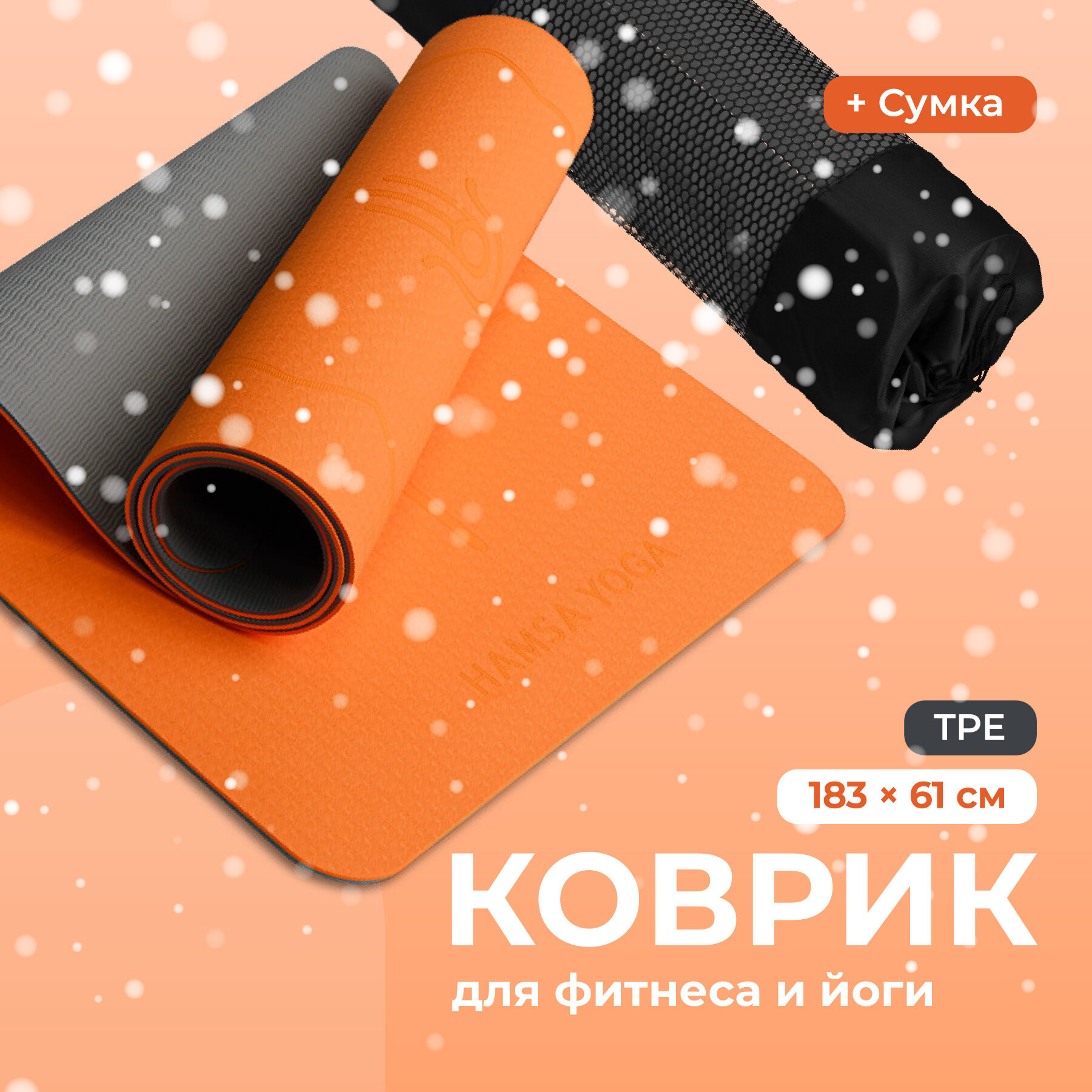 Hamsa Yoga, Спортивный тренировочный коврик для йоги и фитнеса с покрытием TPE, Гимнастический инвентарь для фитнеса, Размер 183х61х0.6 см 1 640 ₽