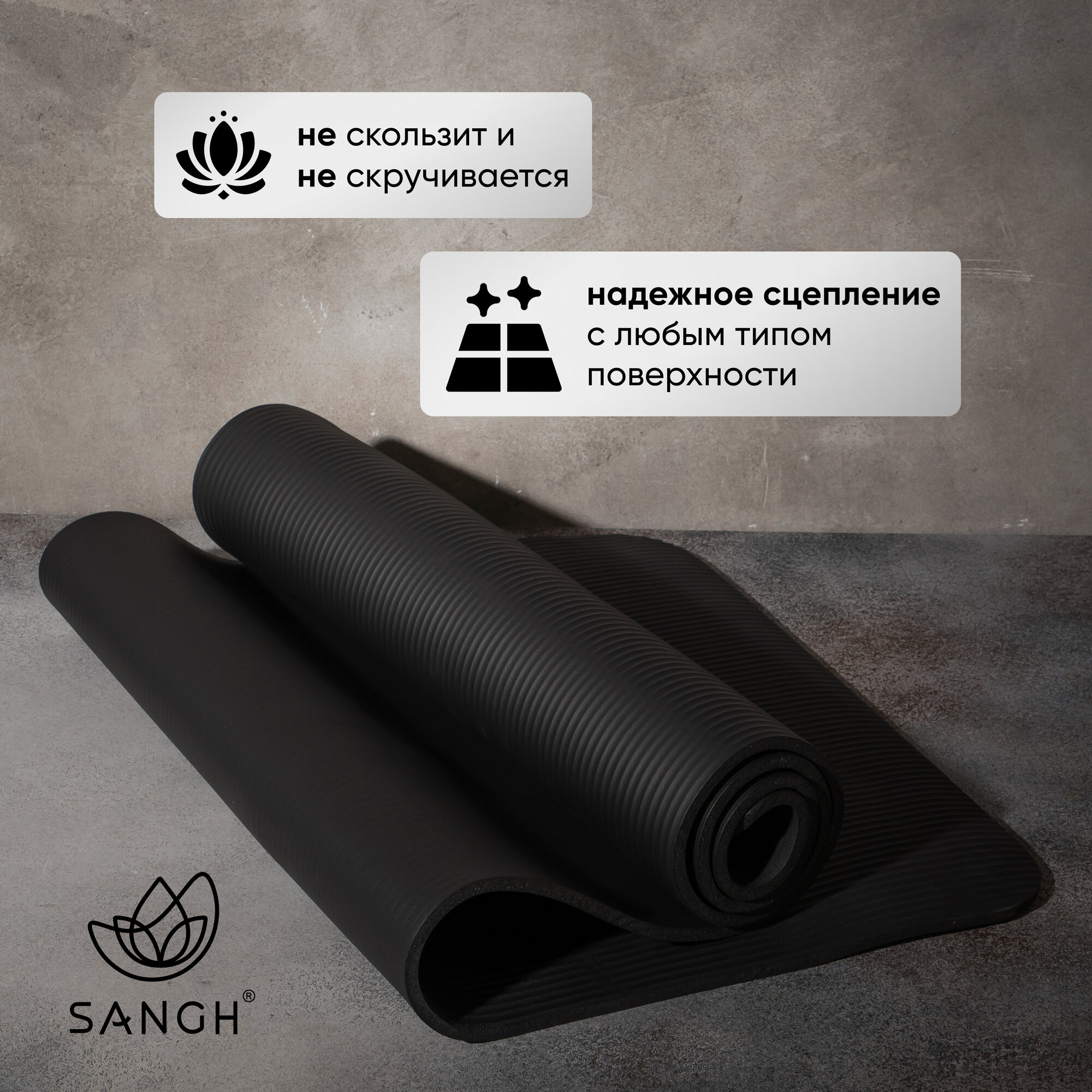 10 цен на Коврик Sangh, для йоги, размер 183 х 61 х 1,5 см, цвет чёрный