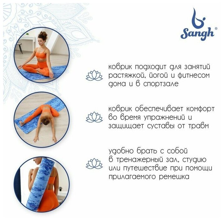 Коврик для йоги 183 х 61 х 0,8 см, цвет синий (1 шт.) информация: