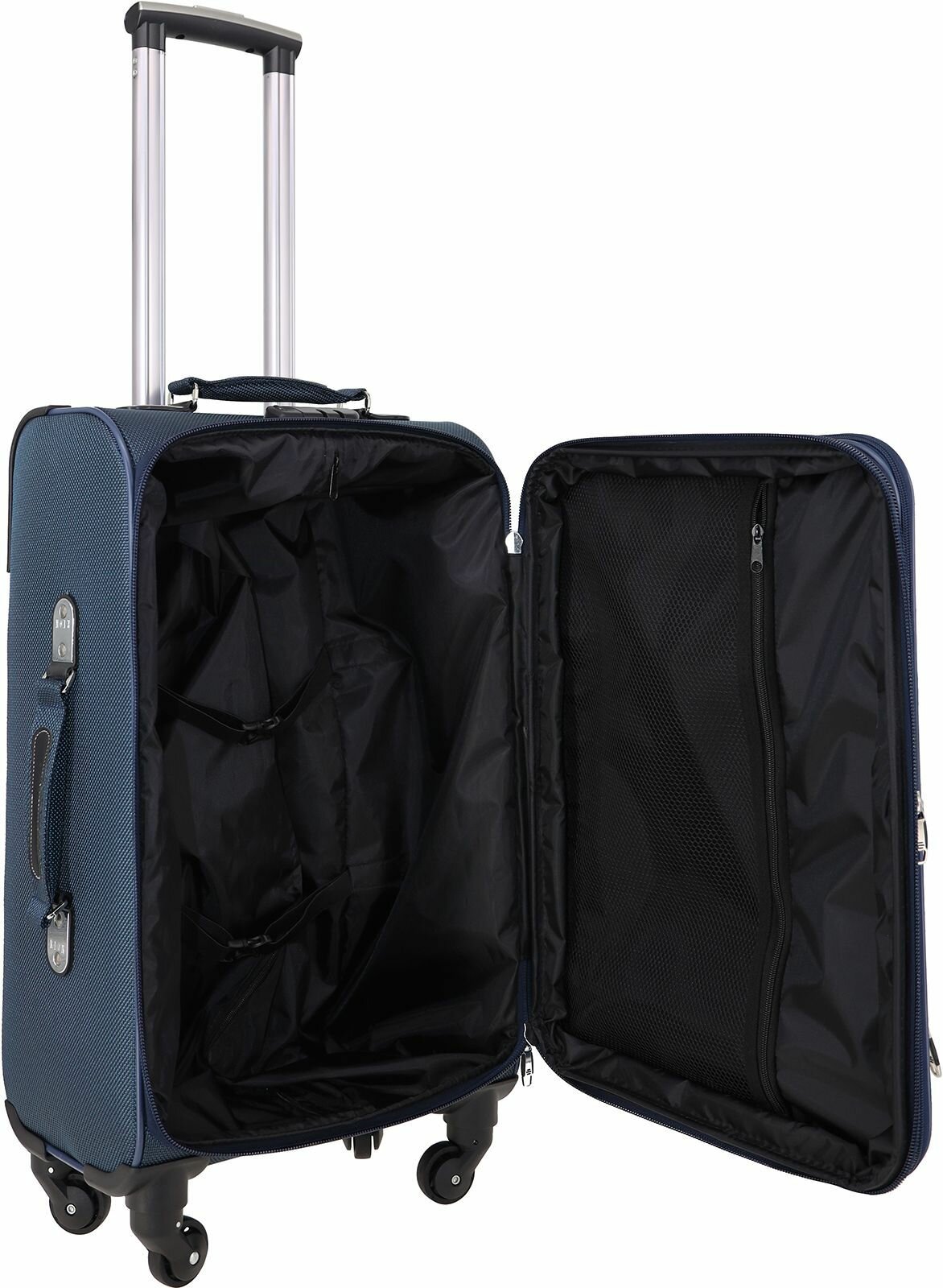 Чемодан Рион+ (RION+) R427-4, Ткань, 66 см, 52 литра, 4 колеса, M (56-70 см), трансформер +15 литров, усиленный до 25кг, синий информация: