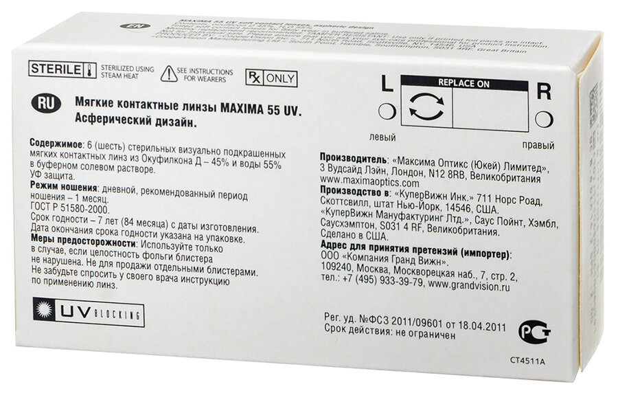 Maxima 55UV (6 линз) 8.9, -2.75 2 145 ₽