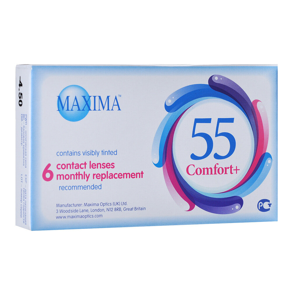 Maxima 55 Comfort Plus 6 линз В упаковке 6 штук Оптическая сила 4.5 Радиус кривизны 8.6
