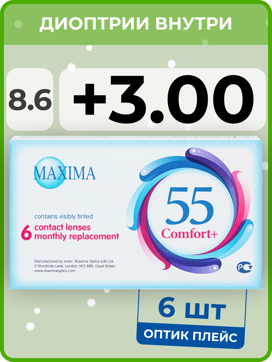 Контактные линзы Maxima 55 Comfort Plus 1 месяц R. 8.6 SPH +3.00 информация: