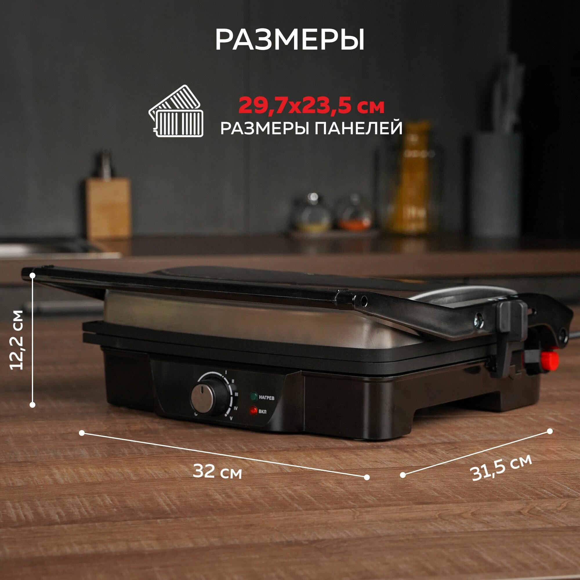 GFGRIL электрогриль /электрический гриль GF-060, антипригарные панели, гриль мощностью 2000 Вт, вертикальное хранение, открывается на 180 градусов 4 590 ₽