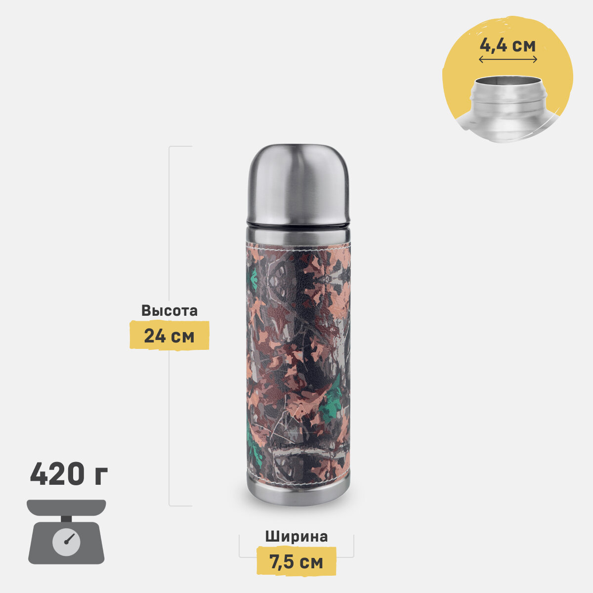 Термос для чая и кофе Арктика 108-500 милитари 0,5 литров в кожаной оплетке с кнопкой и чашкой 1 470 ₽