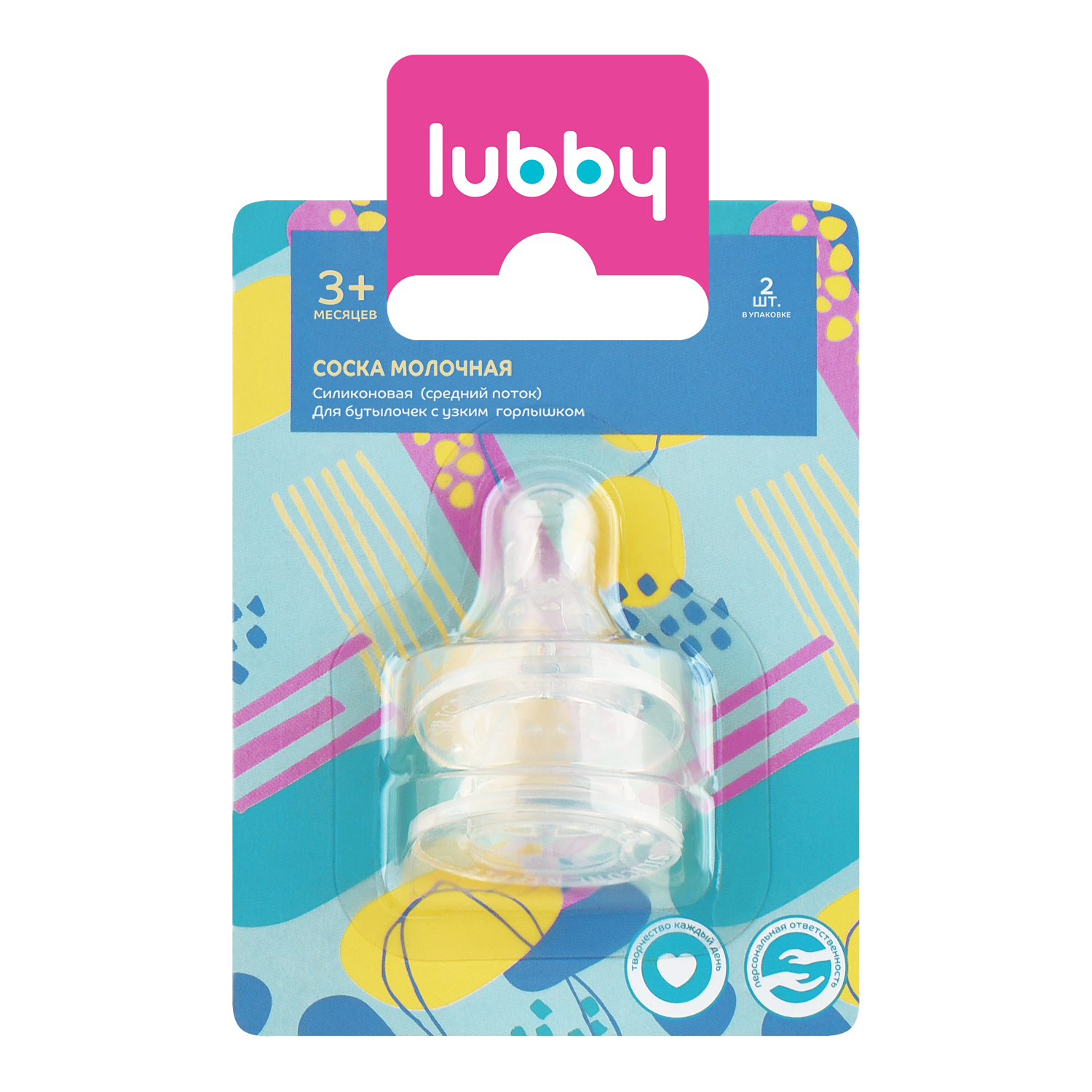 Lubby Соска силиконовая L, широкое горло, от 6 мес., быстрый поток