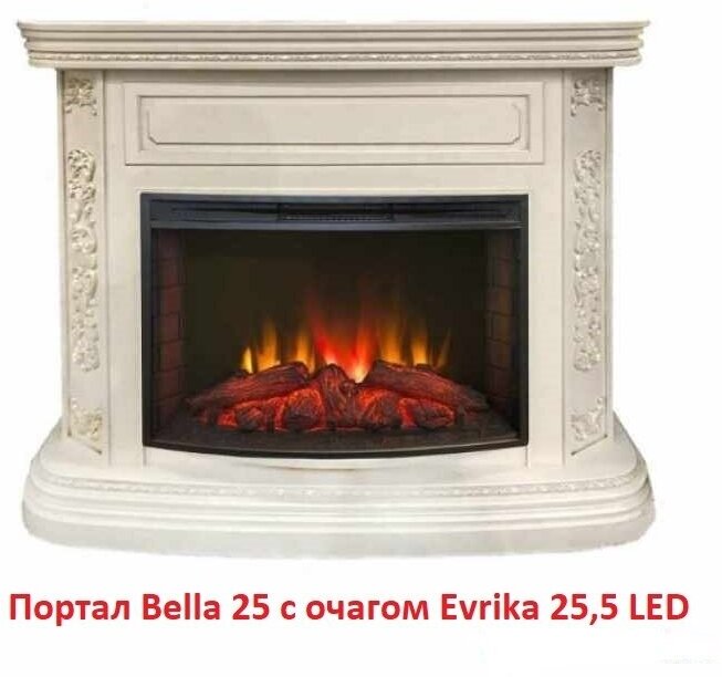 Электрический камин Real Flame Evrika 25,5 LED с имитацией пламени, с обогревом