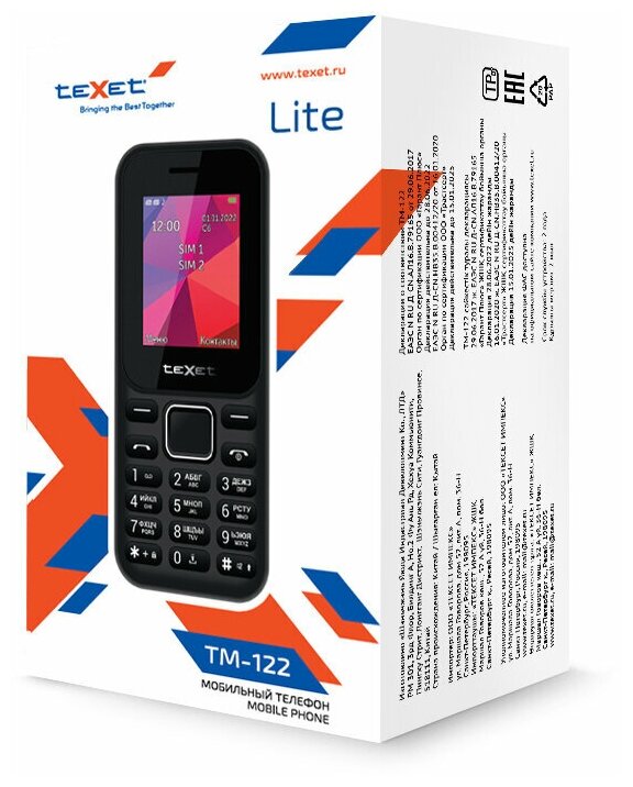 TEXET TM-122 мобильный телефон цвет черный информация: