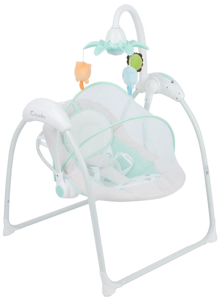 Качели электронные Capella (музыкальные, 8 скоростей, панель для игрушек) зелёный информация:
