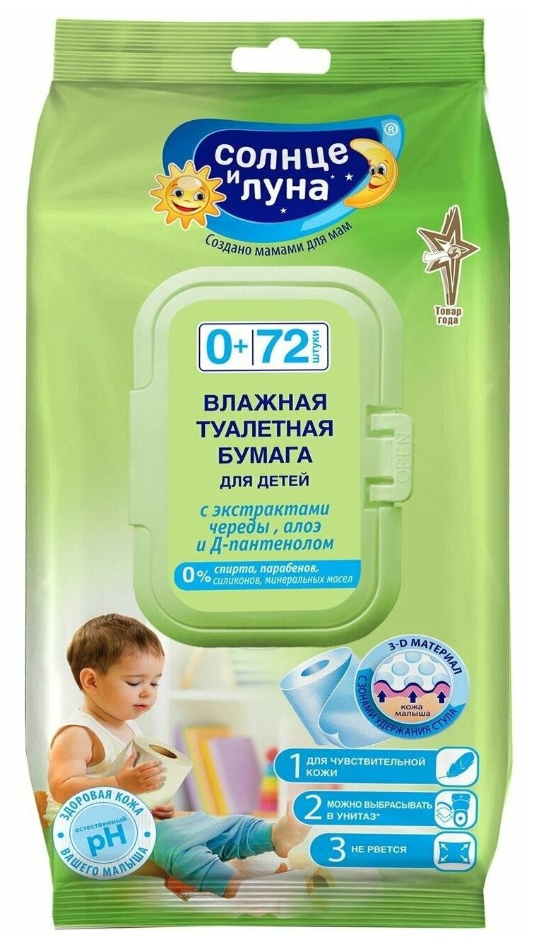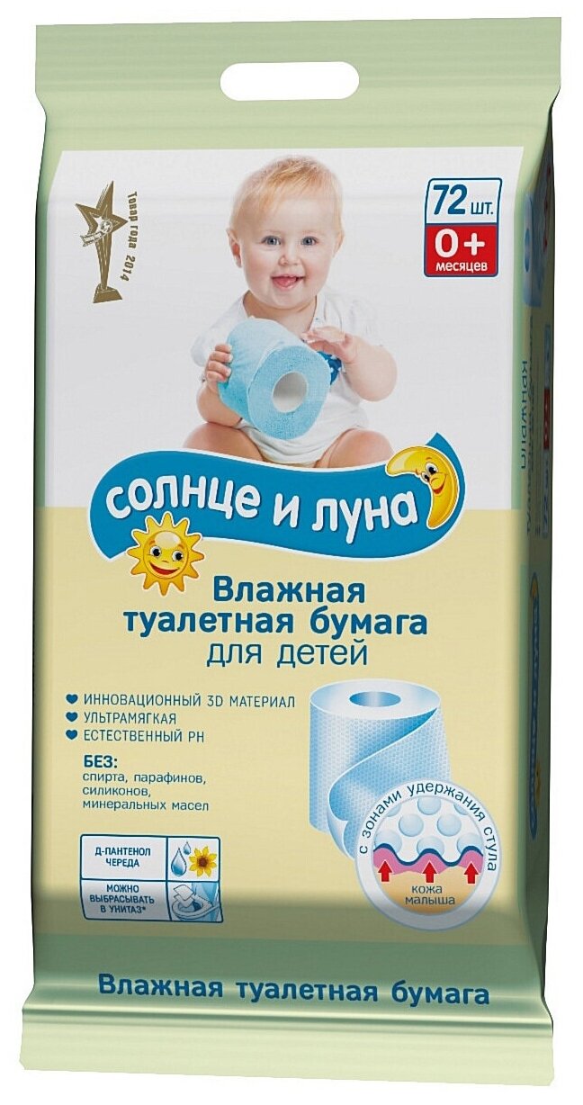 10 цен на Влажная туалетная бумага для детей Солнце и Луна, с экстрактами череды, алоэ и Д-пантенолом, 72 шт.