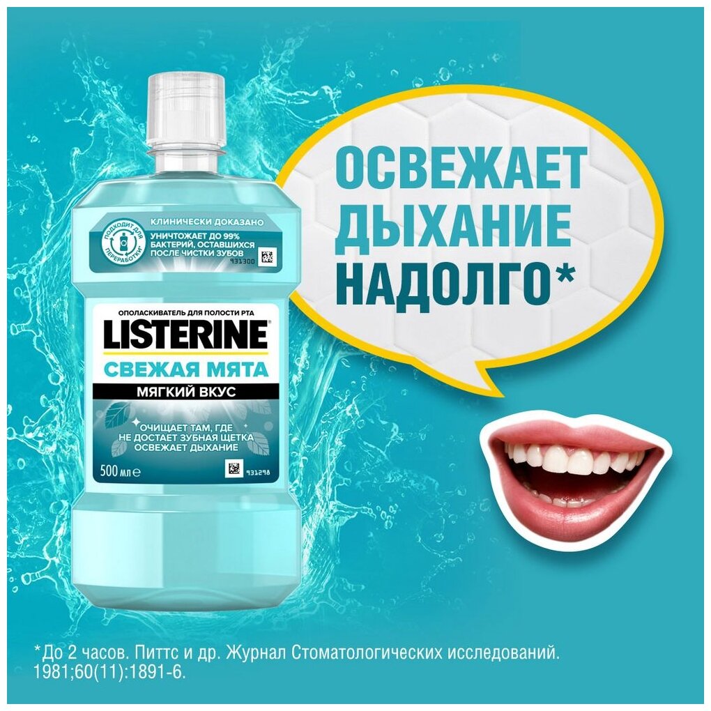 Listerine ополаскиватель Свежая мята, 600 мл + 100 мл. информация: