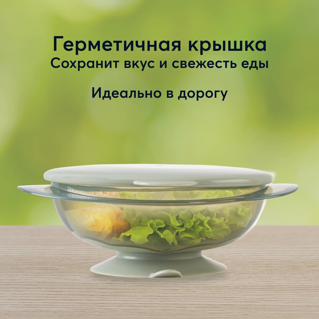 15002, Тарелка детская Happy Baby, тарелка на присоске с крышкой, зеленая информация: