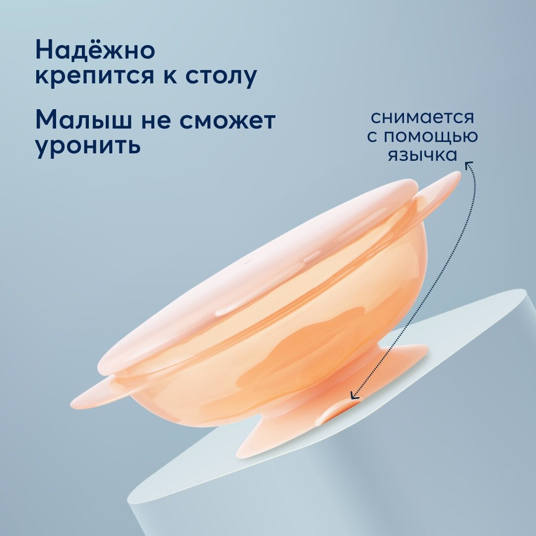 15002, Тарелка детская Happy Baby, тарелка на присоске с крышкой, розовая информация: