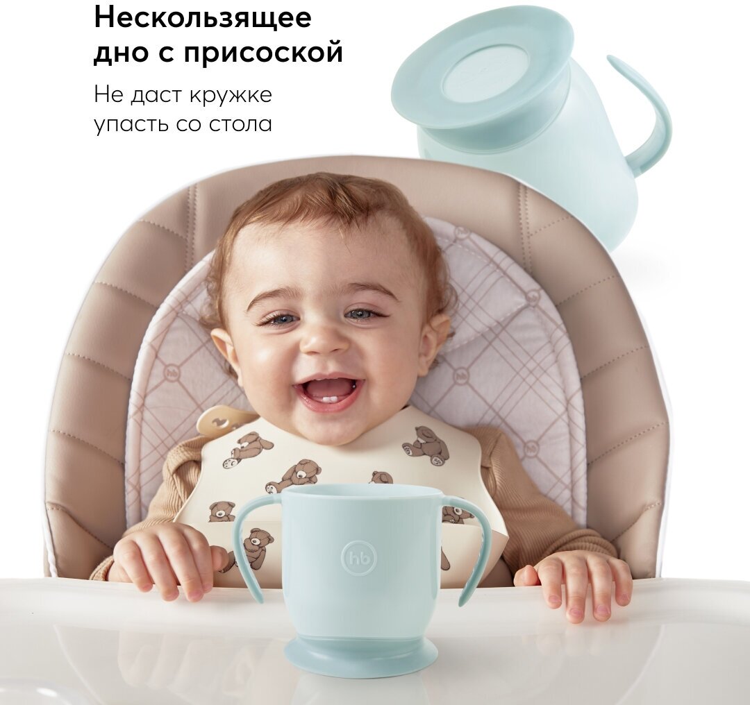 Отзывы на 15022, Кружка детская на присоске Happy Baby, кружка детская пластик, с ручками, полипропилен, голубая