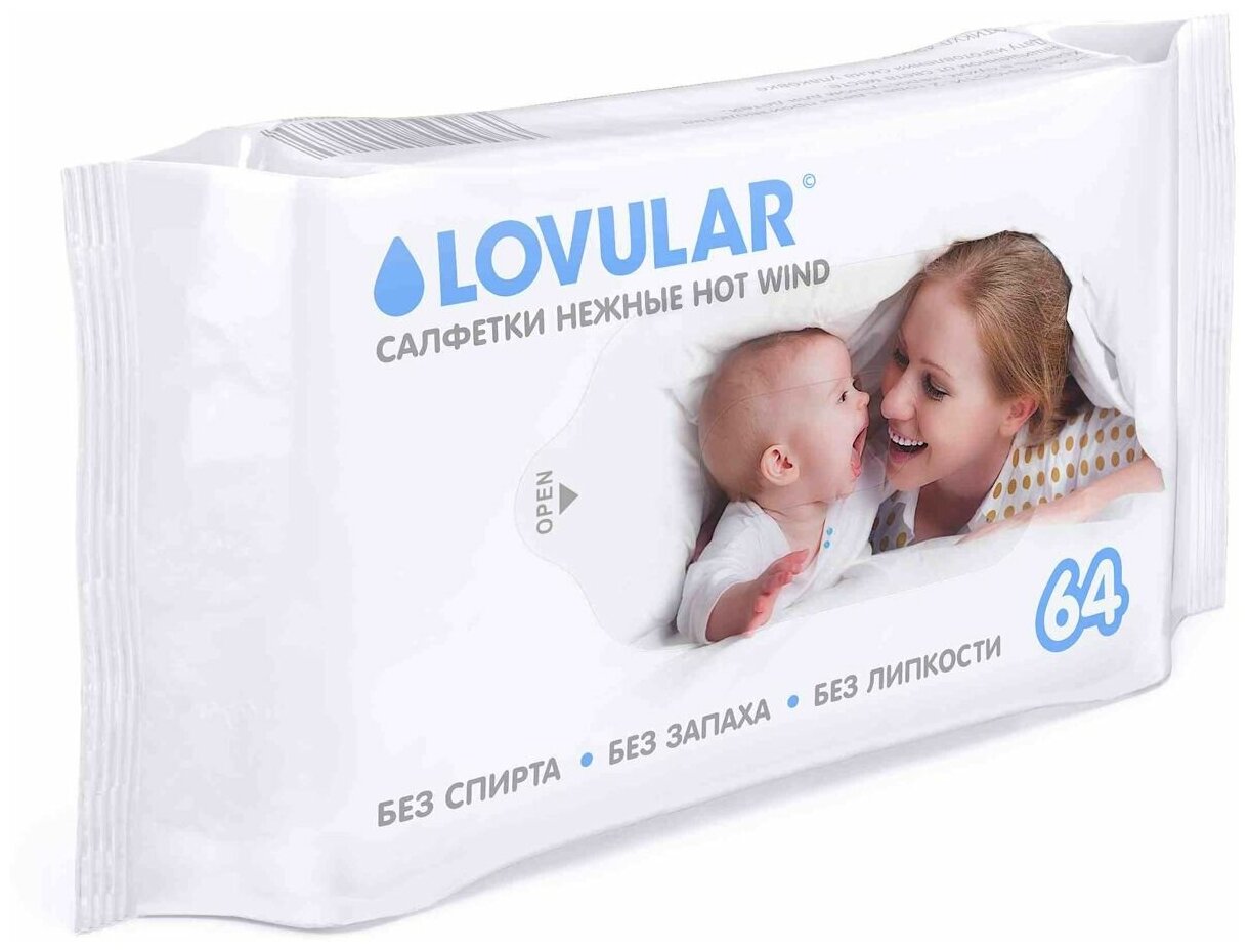Влажные салфетки LOVULAR Hot Wind, липучка, 64 шт., 1 уп.