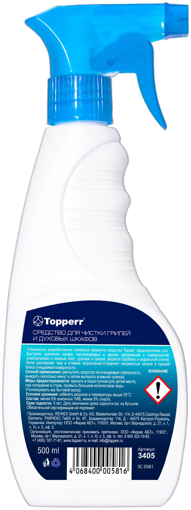 Чистящий спрей Topperr 3405 для духовок и грилей, спрей, 500 мл .