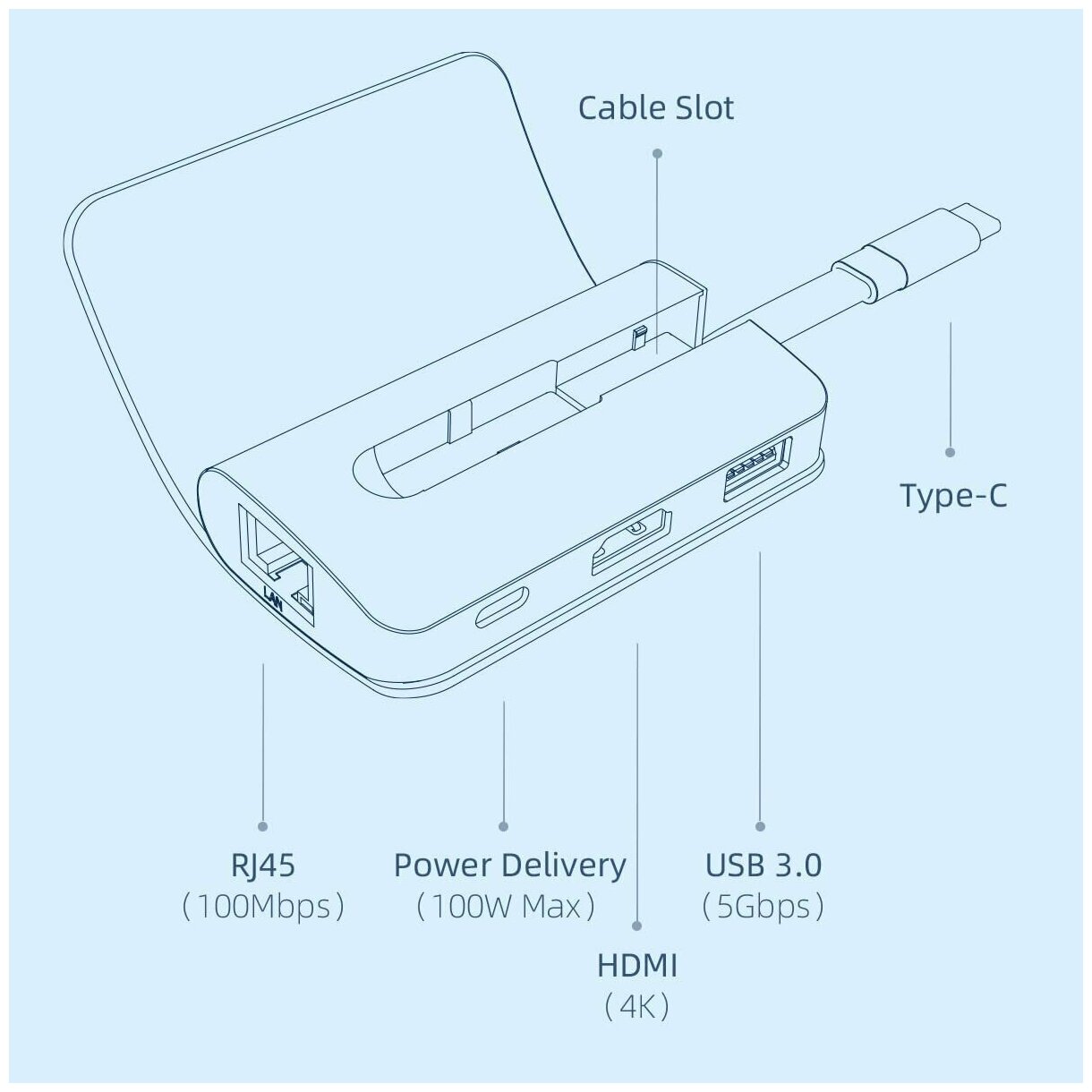 USB-концентратор (хаб) Hagibis для Nintendo Switch 4 в 1, RJ45, USB-C, USB-A, HDMI (SWC04) информация: