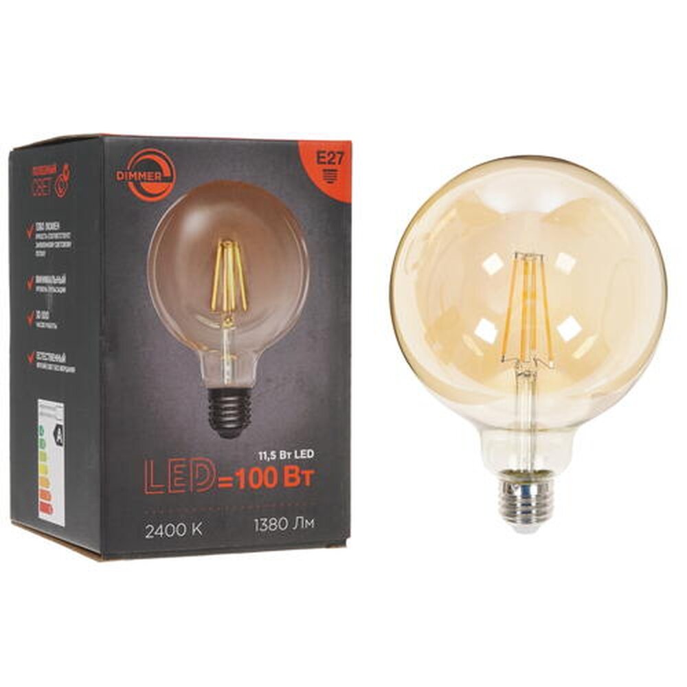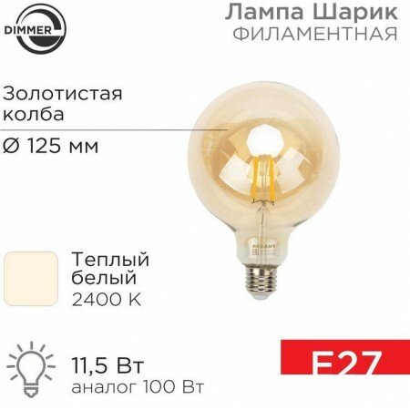 Лампа филаментная диммируемая REXANT в форме Груши A95 мощность 11.5 Вт, цоколь E27, золотистая колба