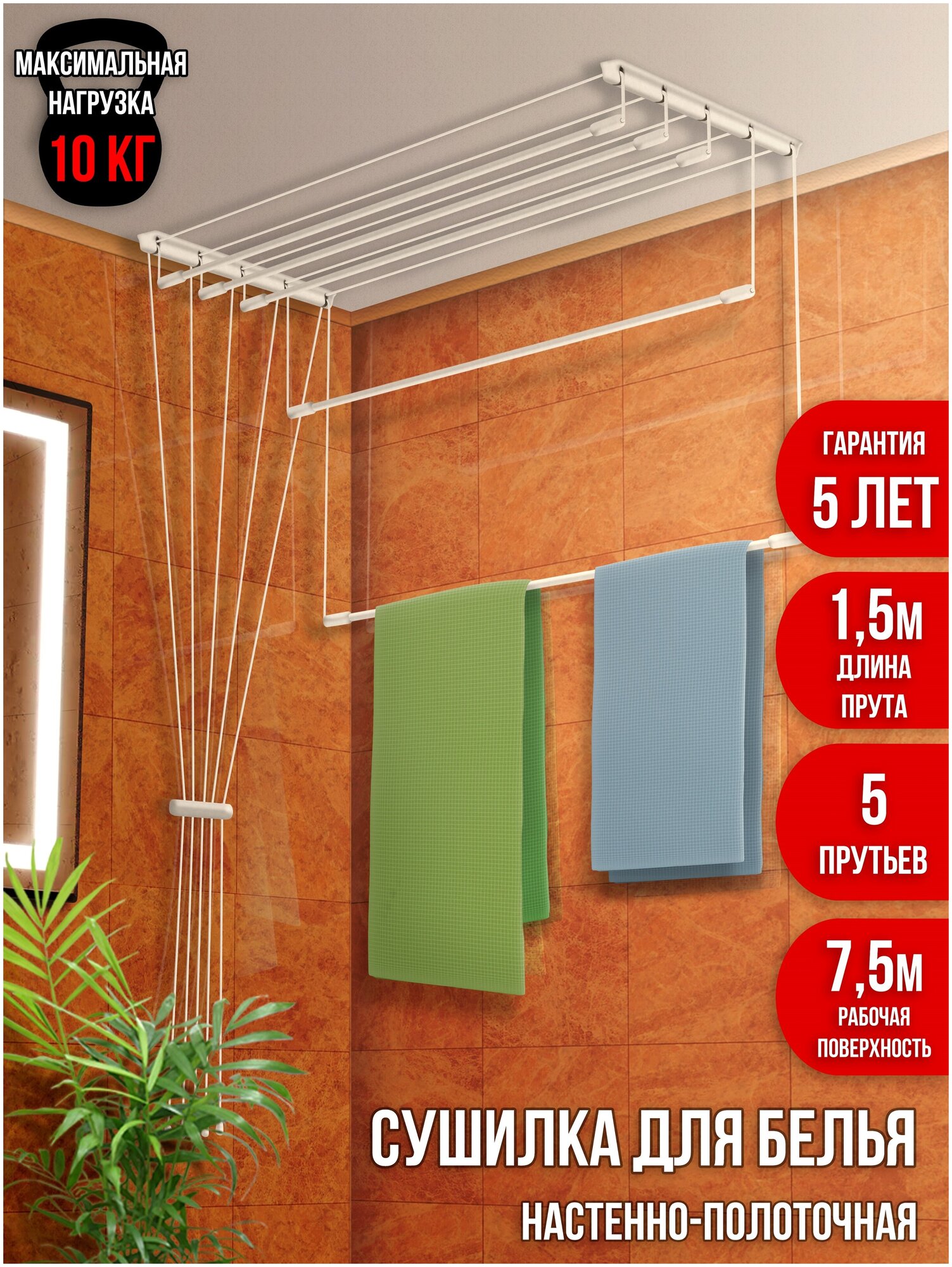 10 цен на Сушилка для белья потолочная Лиана 1,5 м / Нар