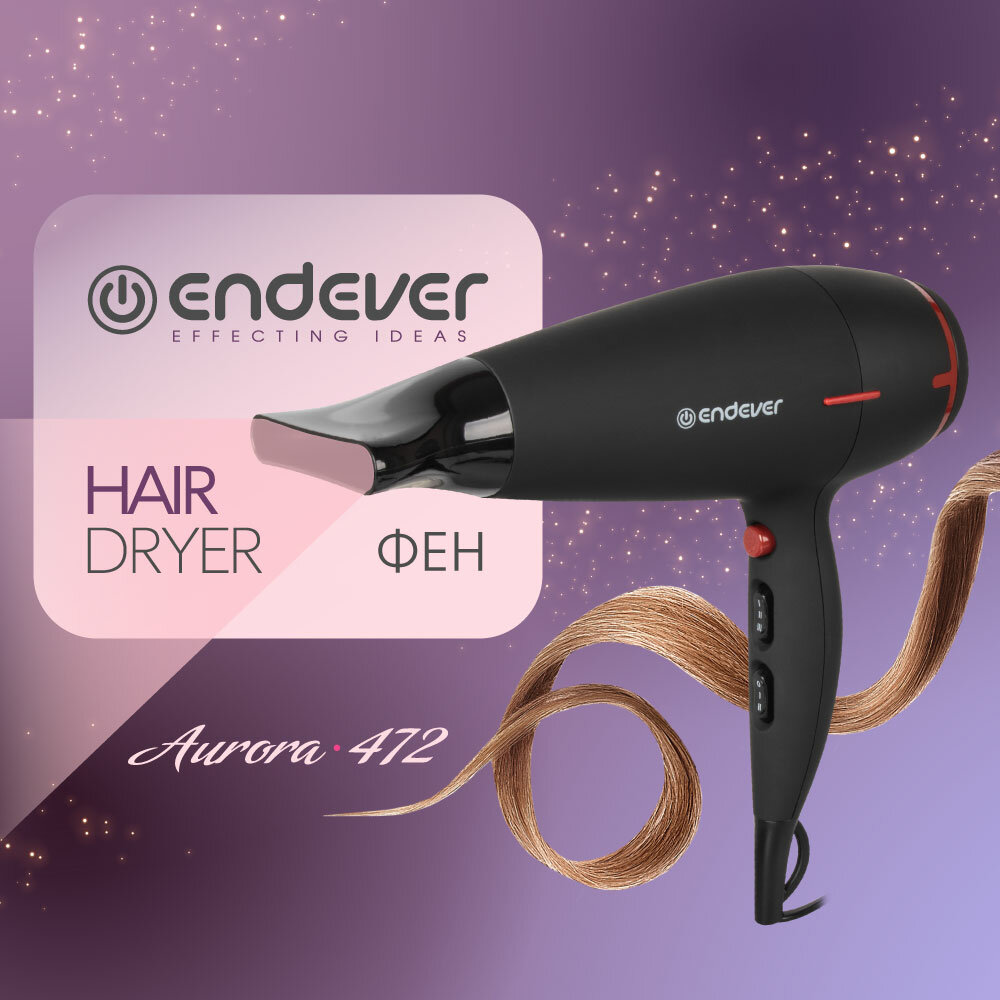 Прочая бытовая техника Endever Фен для волос Endever Aurora 472, черный