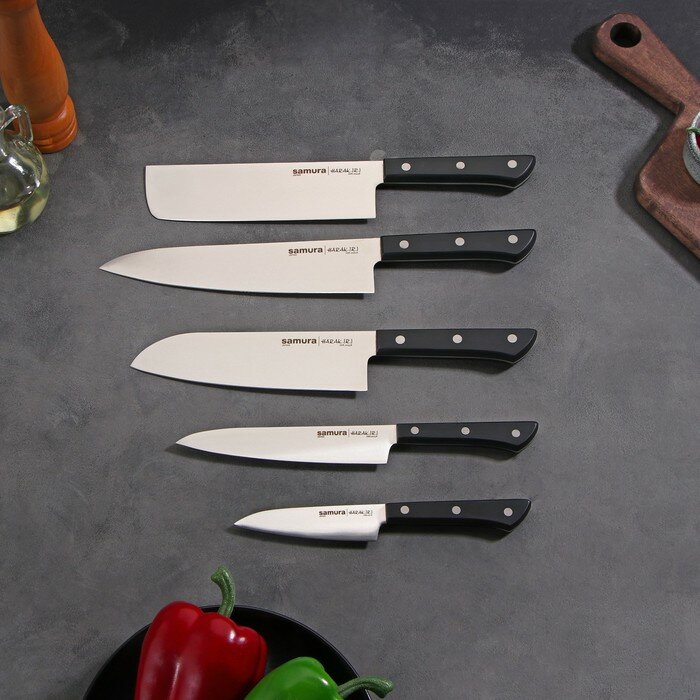 10 цен на Набор кухонных ножей Hаrаkiri, 5 шт: лезвие 9,9 см, 15 см, 16,1 см, 16,5 см, 18,5 см, сталь аUS-8