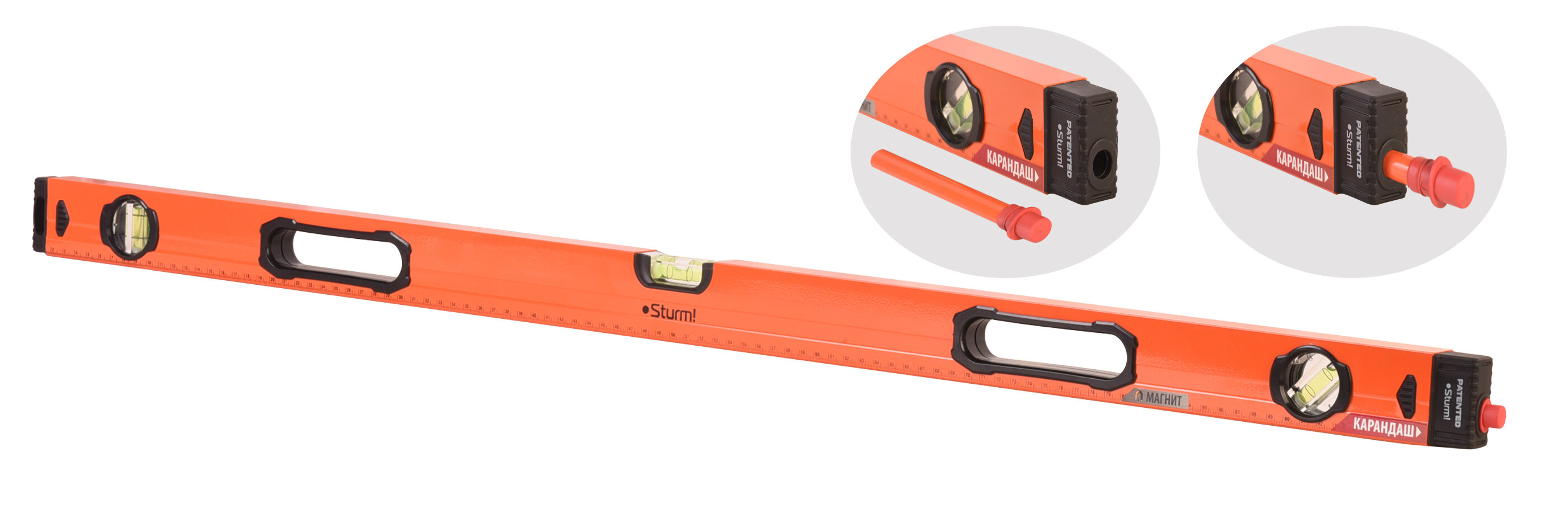 Уровень 1000мм STURM 2015-09-1000 усилен., магнитн, 3 глазка, карандаш