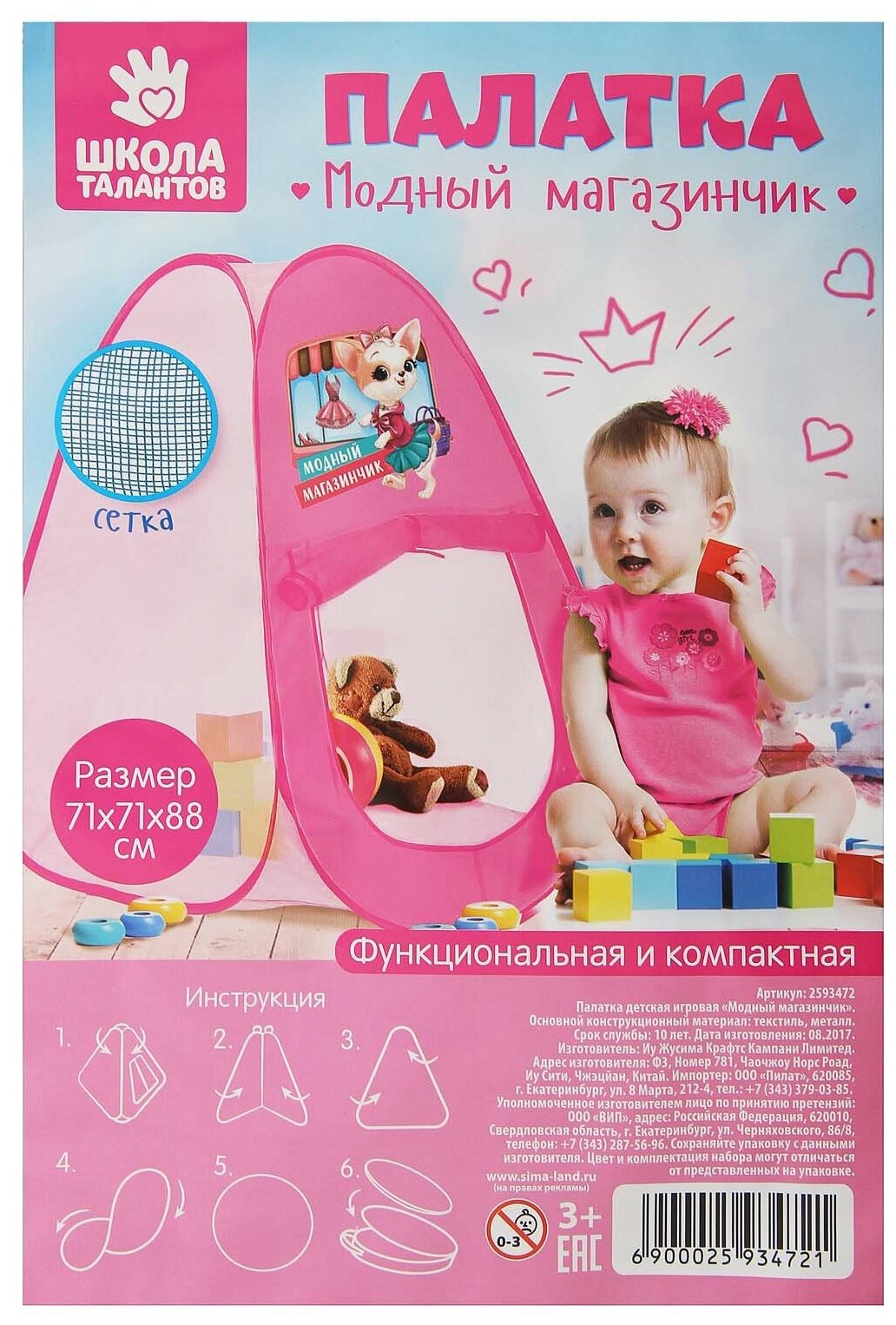 Палатка игровая Школа талантов "Модный магазинчик", 71*71*88 см (2593472)