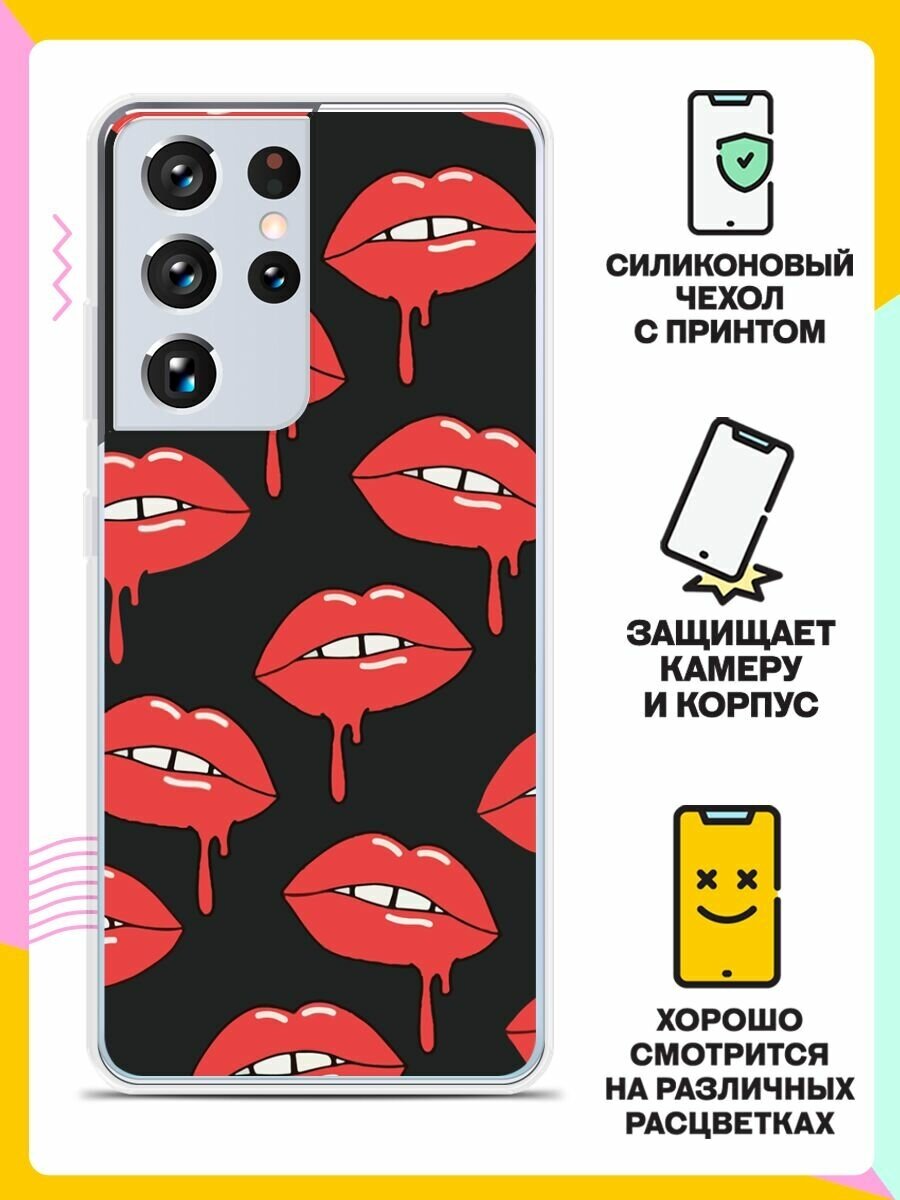 10 цен на Силиконовый чехол на Samsung Galaxy S21 Ultra Губы / для Самсунг Галакси С21 Ультра