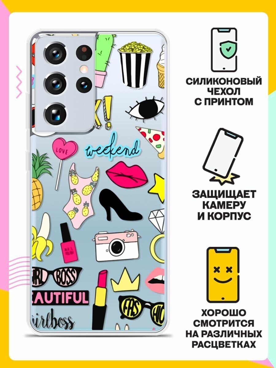 Силиконовый чехол на Samsung Galaxy S21 Ultra Узор из принадлежностей / для Самсунг Галакси С21 Ультра информация: