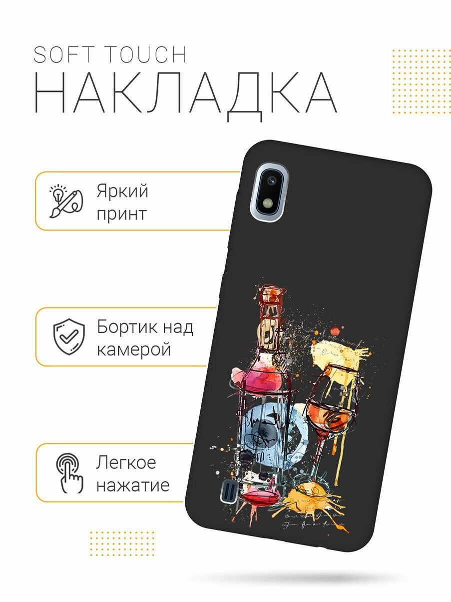 Матовый Soft Touch силиконовый чехол на Samsung Galaxy A10 / Самсунг А10 с 3D принтом "Aquarelle Wine" черный информация: