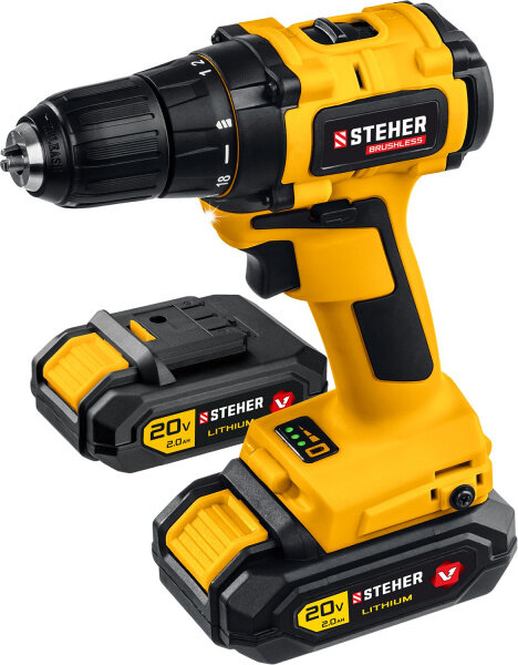 10 цен на Дрель-шуруповерт бесщёточная Steher CDB-200-2 АКБ (2Ач) в кейсе