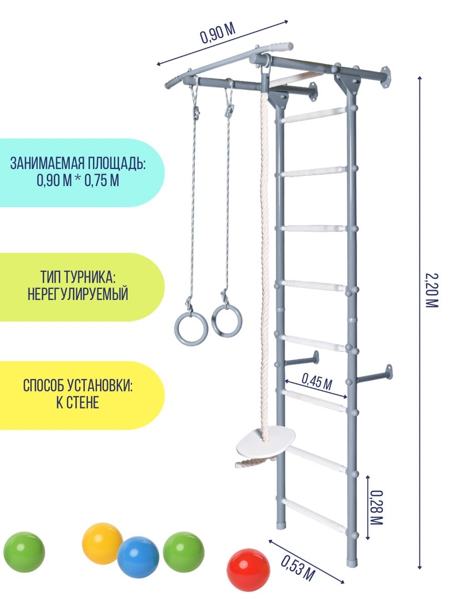Канат со ступенями Perfetto спорт "Климбинг" PS-323, для ДСК, неоновая подсветка, 4 кольца