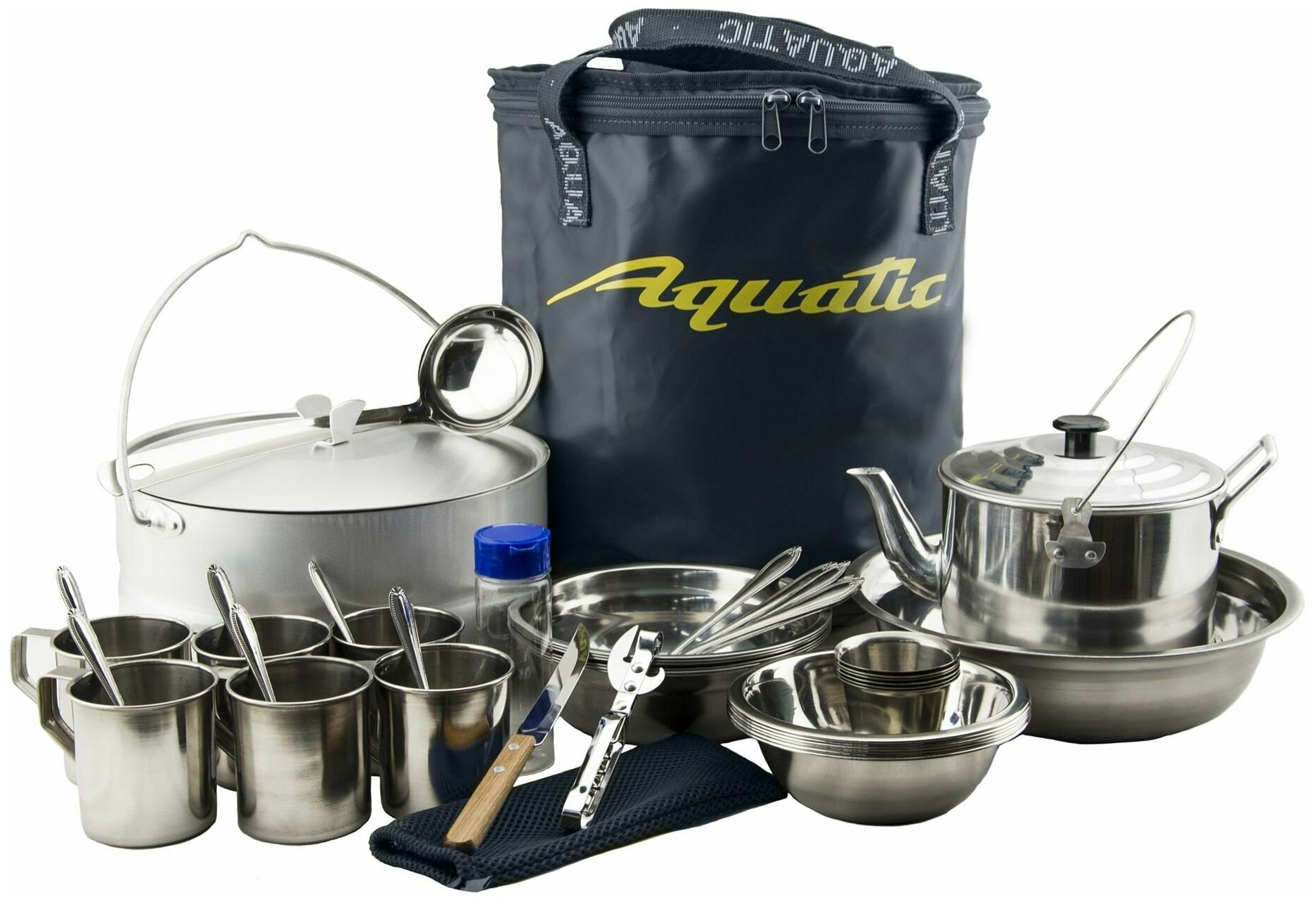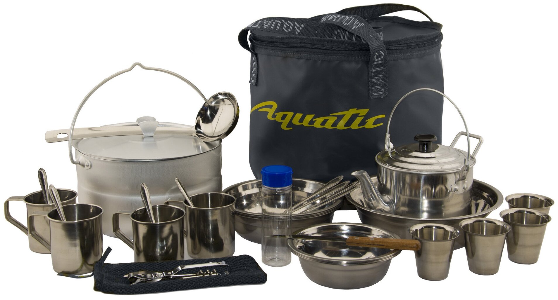 | Комплектация | – Ведро В-04 30 литров (герметичное, с крышкой) – 1 штука; – Котелок 6 литров (алюминий) – 1 штука; – Чайник 2,6 литров (алюминий) – 1 штука; – Миска 2,8 литров (нержавеющая сталь) – 1 штука; – Миска 1 литр (нержавеющая сталь) – 6 штук; – Миска (нержавеющая сталь) – 6 штук; – Кружка 300 миллилитров (нержавеющая сталь) – 6 штук; – Стопка 100 миллилитров (нержавеющая сталь) – 6 штук; – Ложка столовая 18,9 сантиметров – 6 штук; – Ложка чайная 13,7 сантиметров – 6 штук; – Штопор с открывалкой – 1 штука; – Половник 30 сантиметров (нержавеющая сталь) – 1 штука; – Нож универсальный – 1 штука. – Емкость для специй – 1 штука. |