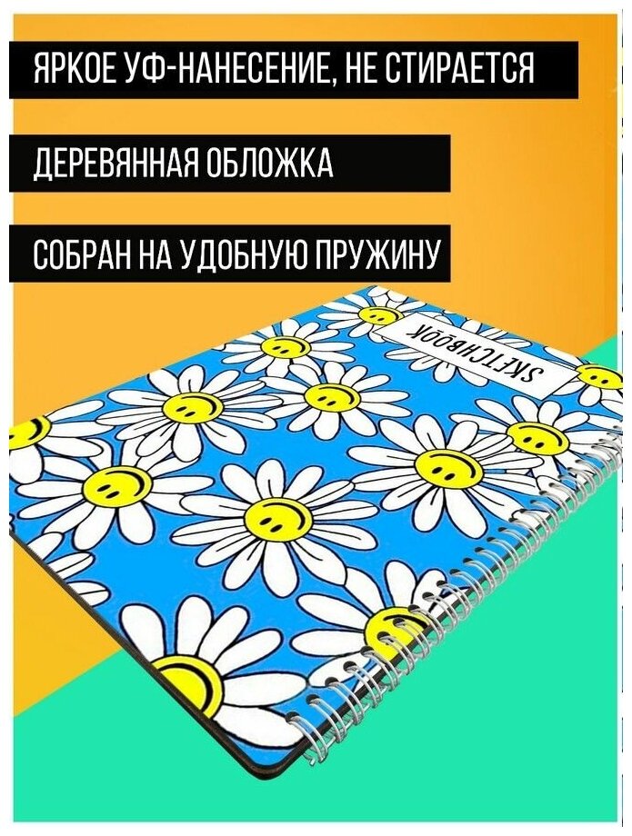 10 цен на Скетчбук Блокнот, A4 50 листов с деревянной обложкой принт Смайл (милота, подростки) - 3109