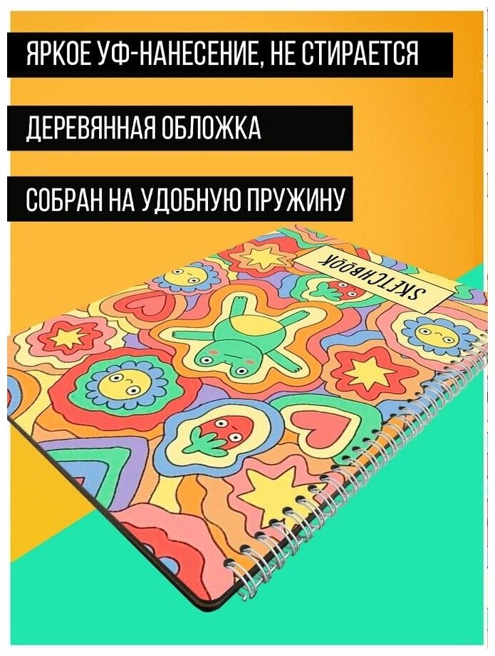 10 цен на Скетчбук Блокнот, A4 50 листов с деревянной обложкой принт Графика (милота, подростки) - 3107